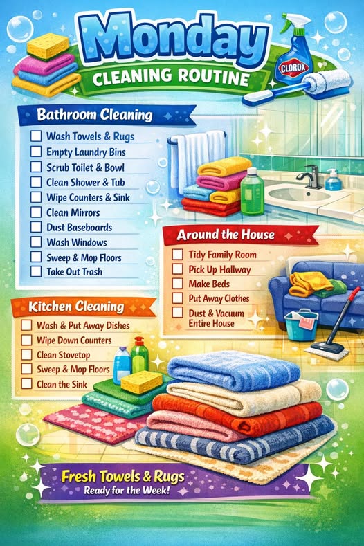 🧼 Complete Monday Cleaning Routine – Full Method Guide