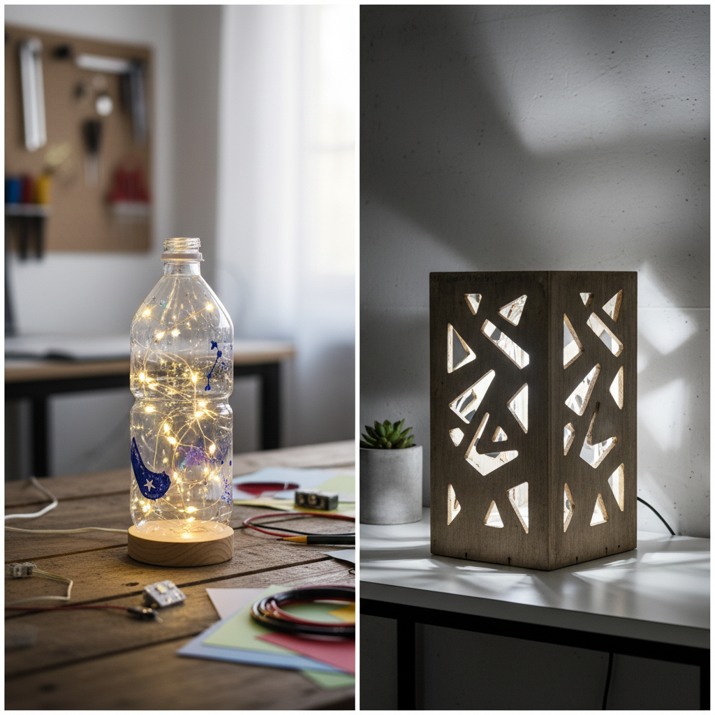 Wash the plastic bottle and let it dry completely. - Prepare the lights