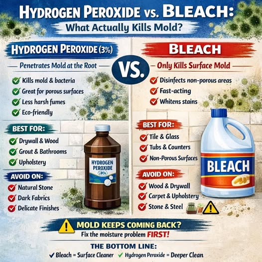 Hydrogen Peroxide vs. Bleach: What Actually Kills Mold?